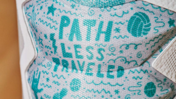 These new sneakers happen to pay homage to Delle Donne and her journey through life and basketball. A litany of symbols that have relevance to EDD appear—including the phrase “The Path Less Traveled” and “I Love You” inscribed in sign language for her older sister. Also among the designs is the state of Delaware, clouds representing the Chicago Sky, and one for her love of water.